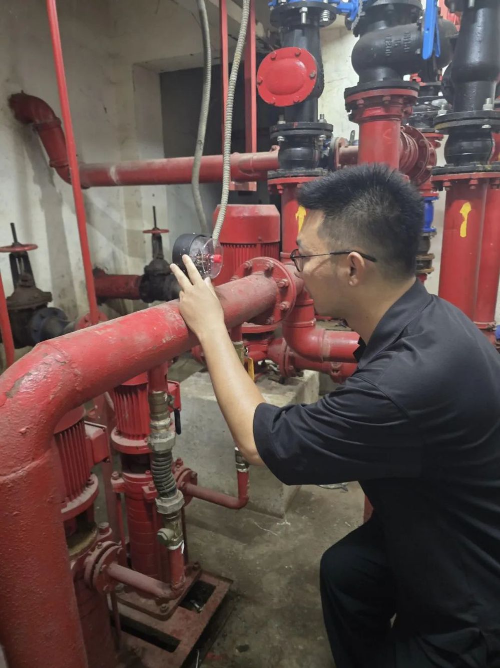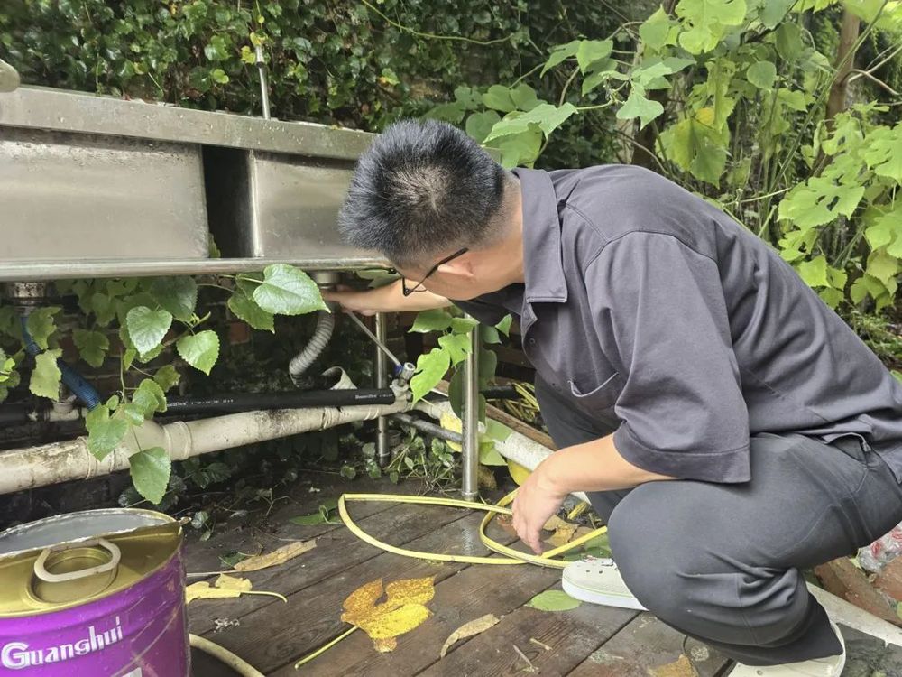 正午12點,魯毅推開東圈門故居泵房的鐵門。他彎腰檢查排水管道水位儀,指尖在控制面板上快速跳動,將前夜模擬的臺風路徑數(shù)據(jù)錄入系統(tǒng)。臺風預計夜間登陸,下午必須完成所有低洼區(qū)商戶的防倒灌檢查。他邊說邊將《極端天氣安全手冊》塞進工具包,包里還裝著測電筆、燃氣泄漏檢測儀和一沓自己手繪的獨居老人安全檔案。