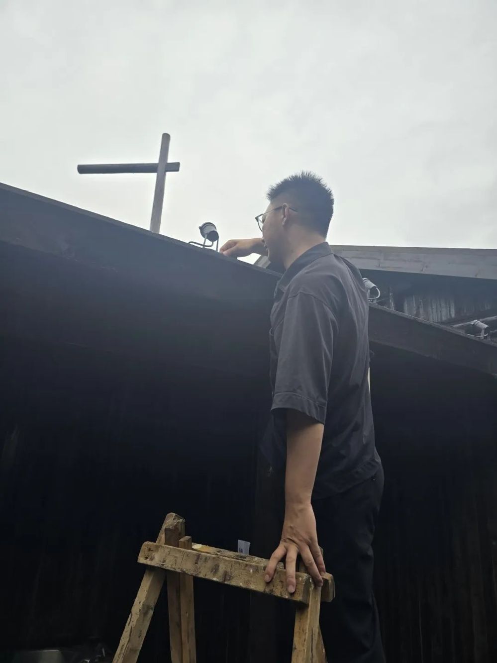 下午2點,魯毅帶著“安全禮包”來到街區(qū)某民宿。他爬上木梯檢查屋頂太陽能熱水器固定情況,發(fā)現(xiàn)支架螺絲松動,立即掏出電動扳手,指導商戶用扳手進行緊固。轉入公共區(qū)域,魯毅的目光被墻角斑駁的接線板吸引。“王姐您看,這截銅線已經(jīng)薄得像紙片,同時開空調(diào)和熱水器,它就會像您煮的陽春面——發(fā)燙、發(fā)軟!”話音未落,他掏出帶有過載保護的新插座,當著眾人接上電熱水壺,在熱水壺燒開的瞬間,咔嗒一聲清脆的斷電聲讓空氣凝固,商戶不由得驚出了一身冷汗。