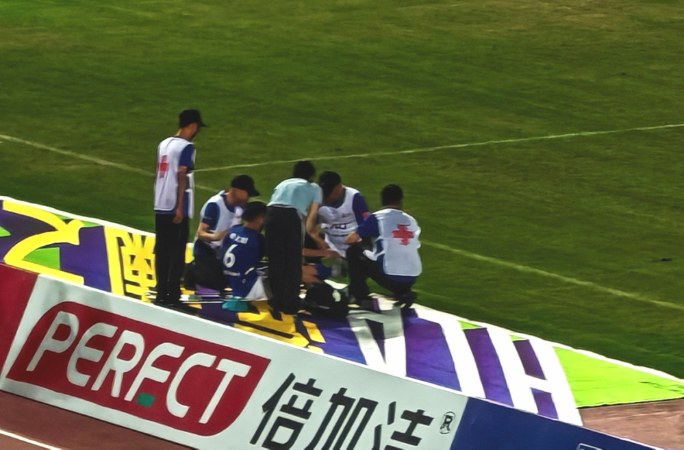 比賽現(xiàn)場,隊員們按照賽事組委會統(tǒng)一部署,身著統(tǒng)一制服,與市衛(wèi)健委、急救中心等專業(yè)醫(yī)療團(tuán)隊緊密配合,在球場關(guān)鍵點(diǎn)位待命,一旦裁判示意需要醫(yī)療介入,擔(dān)架組隊員迅速入場。本場比賽中擔(dān)架組隊員共上場4次,隊員們嚴(yán)格執(zhí)行標(biāo)準(zhǔn)操作流程,完成傷情評估、傷員固定及轉(zhuǎn)運(yùn),最大限度減少球員二次傷害風(fēng)險。