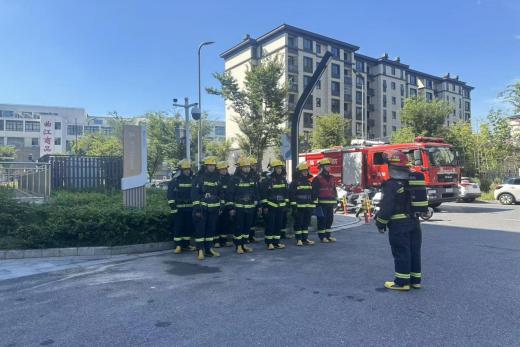 9時45分,演練啟動。模擬1樓某商鋪因電路故障起火,濃煙觸發(fā)煙感報警后,中控室立即啟動應急預案:一方面迅速組織人員疏散群眾、設置安全警戒區(qū)域;一方面立即聯系消防大隊,同步精準傳遞 “火情” 信息。消防救援力量抵達現場后,快速架設水槍壓制 “火點” ,并全面排查 “被困人員”,雙方配合默契、行動高效。經過30分鐘的協同處置,“火情” 成功被控制,演練圓滿結束。