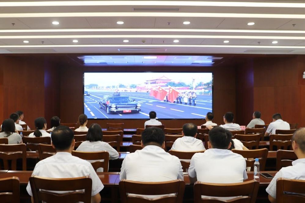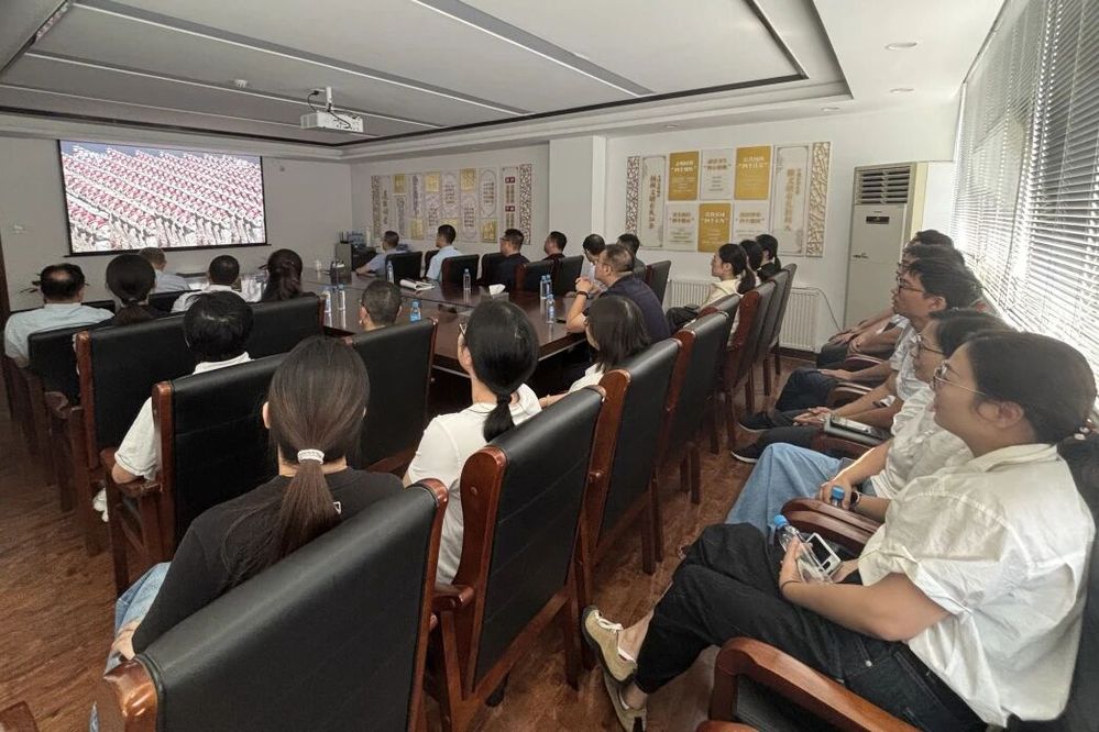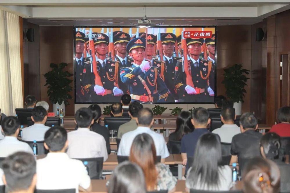 集中觀看現(xiàn)場氣氛莊重肅穆,大家全神貫注地觀看直播,認(rèn)真聆聽習(xí)近平總書記重要講話,深刻感悟抗戰(zhàn)勝利的偉大意義和歷史啟示。當(dāng)國旗護(hù)衛(wèi)隊(duì)邁著鏗鏘步伐走來,當(dāng)鮮艷的五星紅旗冉冉升起,當(dāng)新型裝備方隊(duì)展示大國重器時(shí),大家不由涌現(xiàn)出對祖國的深情熱愛和崇敬之情,同時(shí)為國家科技的飛速發(fā)展和人民軍隊(duì)的強(qiáng)盛軍威感到無比驕傲和自豪。