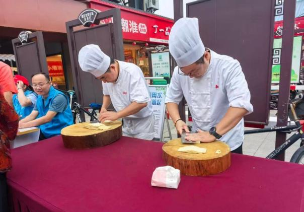 活動現(xiàn)場,來自城控集團下屬市民卡公司、揚州中燃、長江水務(wù)、供熱公司及名城公司的多支志愿服務(wù)隊早早準(zhǔn)備就緒,通過設(shè)立咨詢臺、懸掛展板、發(fā)放宣傳冊和便民禮品等方式,為社區(qū)居民帶來了一場“零距離”的貼心服務(wù)。市民卡公司“e飛揚”志愿服務(wù)隊現(xiàn)場演示了市民卡充值、水氣線上繳費與過戶等操作,推動服務(wù)“掌上辦”;揚州中燃的志愿者們不僅發(fā)放安全手冊,講解用氣知識,更提供了免費的上門燃氣安檢服務(wù),筑牢安全防線;長江水務(wù)的工作人員耐心解答水壓、水費疑問,并為有需求的居民登記上門檢查,切實解決用水煩惱;供熱公司積極宣傳供暖知識與垃圾分類常識,倡導(dǎo)綠色生活;名城公司長樂客棧的廚師們則亮出絕活,現(xiàn)場免費切干絲,展現(xiàn)了“揚州工匠”的親民風(fēng)采,將活動氣氛推向高潮。