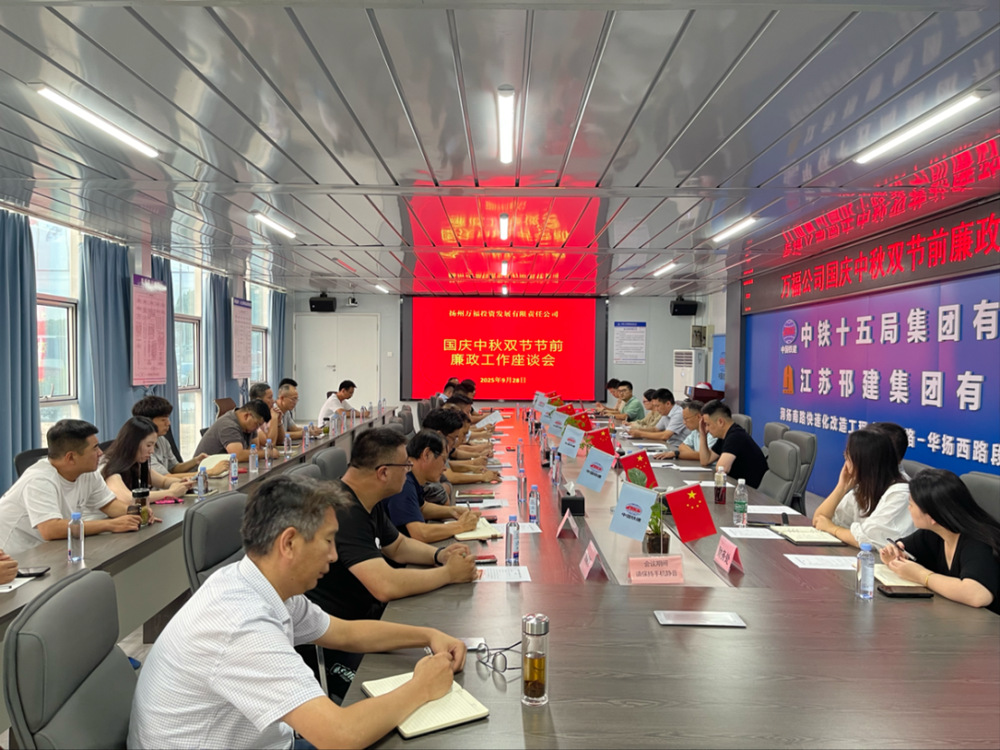 為深入貫徹中央八項規(guī)定精神,營造風清氣正的節(jié)日氛圍,嚴防“八小時外”和“節(jié)日病”,9月28日下午,萬福公司黨支部在潤揚路南延項目部開展節(jié)前廉政工作座談會。萬福公司領導班子成員、各部門負責人及現場工作人員;中鐵十五局、揚建集團、邗建集團、太平洋西北建設集團各項目書記、項目經理和監(jiān)理單位工作人員參加會議。