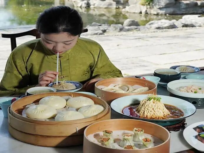 長(zhǎng)樂(lè)客?!扒镯嵲绮柩偶敝噩F(xiàn)清代鹽商“早茶會(huì)客”的雅趣,蟹黃湯包、翡翠燒賣(mài)等淮揚(yáng)名點(diǎn)搭配古箏琵琶演奏,讓游客在舌尖與耳畔同步感受非遺魅力。隔壁的芍藥園子書(shū)場(chǎng)內(nèi),評(píng)彈藝人傾情演繹《珍珠塔》《雙金錠》等經(jīng)典曲目,場(chǎng)場(chǎng)爆滿的盛況印證著傳統(tǒng)曲藝的當(dāng)代生命力。長(zhǎng)樂(lè)鹽商宴更是海納八方客,單日最高接待量突破200人次,沉浸式鹽商家宴成為美食愛(ài)好者的全新打卡地標(biāo)。