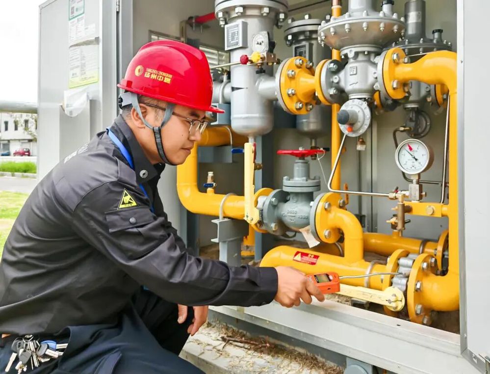 晨光熹微,韋煒已穿戴好防靜電工裝、安全帽,將10多斤重的工具包裝上電動車,再對照前一天的日志規(guī)劃路線,整裝待發(fā)。他負(fù)責(zé)的巡線區(qū)域覆蓋廣陵區(qū)李典鎮(zhèn)、頭橋鎮(zhèn)全域,巡檢管線總長近60公里,涵蓋42個調(diào)壓箱(器),每天步行2萬步是他的工作常態(tài)。