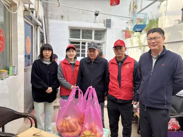 活動(dòng)中,志愿者們來到兩戶老年人家中,將寓意“步步高升、健康長壽”的重陽糕和米、油、牛奶等慰問品遞到老人手中,與老人們促膝交談,詳細(xì)詢問飲食起居與健康狀況,一句句暖心問候、一聲聲真誠祝福,讓老人家中充滿歡聲笑語。