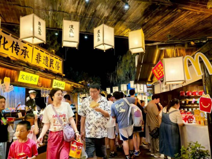 作為江蘇省首批數(shù)字人民幣文旅應(yīng)用集聚區(qū),街區(qū)不斷創(chuàng)新“揚州老字號+數(shù)字文創(chuàng)”的文旅消費模式,謝馥春、三和四美等20余家老字號推出數(shù)字人民幣專屬折扣。此外,街區(qū)還打造“月下東關(guān)·春日雅集”“漢森熊·游園會”等非遺市集,日均吸引超1.95萬人次參與拓印團扇、生肖剪紙等互動體驗,推動傳統(tǒng)商戶數(shù)字化轉(zhuǎn)型率有效提升,形成“日賞非遺、夜享雅韻”的全時段消費閉環(huán)。